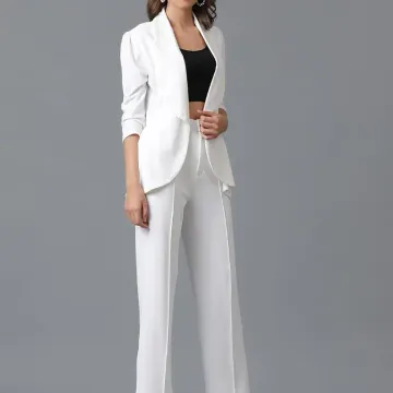 KOTTY Women's Solid Relaxed Fit 3/4 Sleeve Co-ord Blazer and Trouser Set.