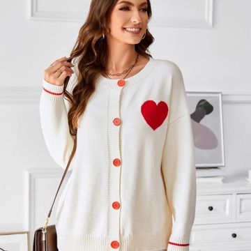 Kawaii Love Heart Print Y2K Button Knitted Outerwear
