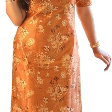 24 Carat Suit Women's Chanderi Straight Printed Calf Length Elbow Sleeve Kurti for Women