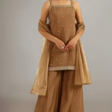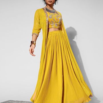 Crop top Palazzo Shrug Set for Women Georgette Embroidery Crop Top