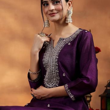 Women's Silk Blend Embroidered Kurta