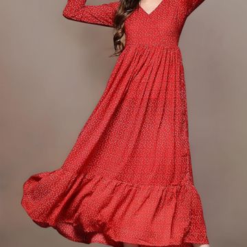 Fashion Basket Red Georgette Embroidered Anarkali Kurta Set for Women