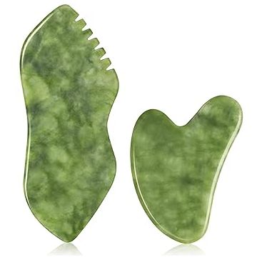 Gua Sha Facial Massage Tool and Roller Set, Facial Massager for Face, Neck, Arms, Eyes, Reduce Puffiness, Improve Wrinkles, Daily Self-Care Gift for Men and Women Emerald Green Pink White