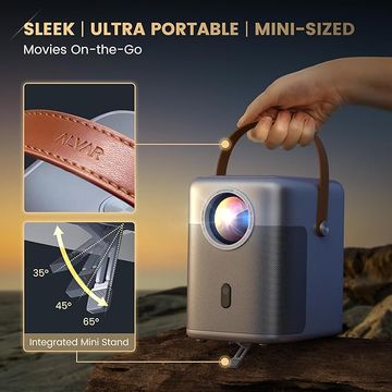 [Auto Focus & Keystone |Quiet] Portable Mini Projector with WiFi 6 and Bluetooth, ALVAR Outdoor Movie Projector 4K 500 ANSI, Intelligent Obstacle Avoidance/Screen Alignment, PPT Supported