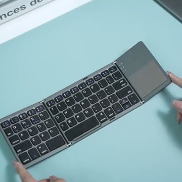 64-key Wireless BT Keyboard Rechargeable Foldable Keyboard Portable Ultra Slim BT Keyboard with Touchpad for Windows/Android/iOS