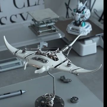 Mechanical Manta Ray Assembly Model White Pure Metal Electric Drive Handmade Model Toy Art Ornaments