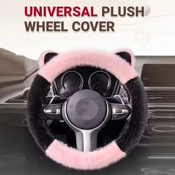Winter Non-slip Steering Wheel Cover Soft Warm Plush Steering Cover Cute Stretchy Cat Ears Steering Wheel Cover for Car Steering