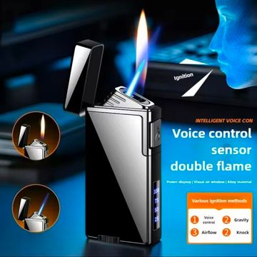 Intelligent Voice Controlled 2 Flames Butane Gas Lighter Open Flame Switching Jet Blue Flame Cigar Electric Lighters Smoking