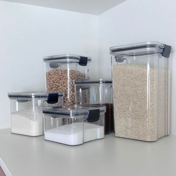 Conjunto de 5 Potes Herméticos em Acrílico Cristal com Trava e Design Empilhável - Organizador para Mantimentos