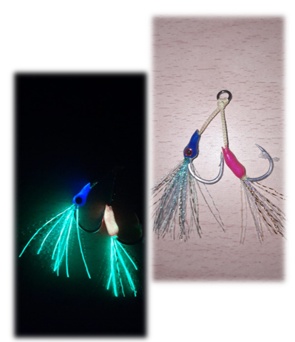 Premium handcrafted fishing hooks with custom colors and strong rigs, made to boost every catch.