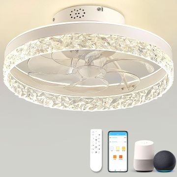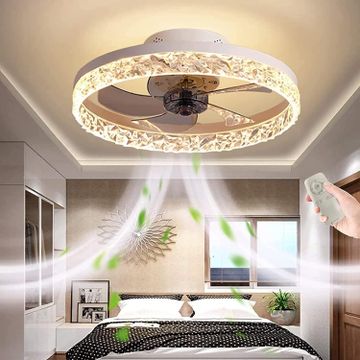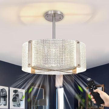 DUJAHMLAND Dimmable Crystal Ceiling Fan with Light