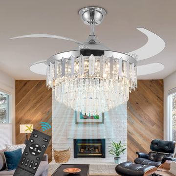 42 Inch Chandelier Ceiling Fan Modern Crystal Ceiling Fan with Lights