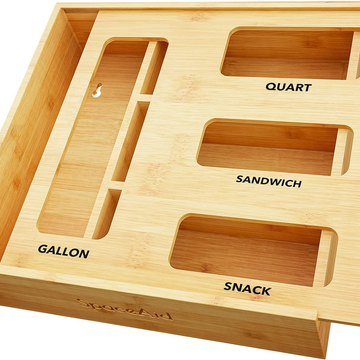 Organizer for Kitchen Drawer, Bamboo Organizer, Compatible with Gallon, Quart, Sandwich and Snack Variety Size Bag