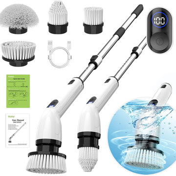 TUYU Electric Spin Scrubber, Full-Body IPX7 Waterproof Bathroom Scrubber with Power LCD Display, Adjustable Extension Handle, Cordless Shower Cleaner Brush for Bathtub Kitchen Wall Cleaning