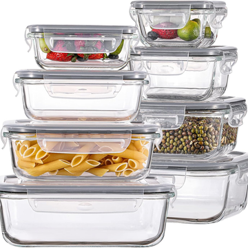 HOMBERKING 8 Pack Glass Food Storage Containers with Lids, Meal Prep Containers, Airtight Bento Boxes with Leak Proof Locking for Microwave, Oven, Freezer and Dishwasher, BPA Free, 5-35oz