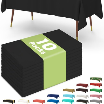 Pureegg Plastic Table Cloth Disposable 10 Pack, 54 x 72 Inch Table Cloths for Parties, Decorative Tablecloths for Rectangle Tables, Black Plastic Table Cover, Leakproof & Sturdy, Black