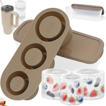 Tumbler Ice Cube Mold for Stanley, with Lid & Bin Stackable Silicone Ice Cube Tray for 40 oz Travel Mug for Chilling Coffee, Whiskey, Cocktails Drinks Increase Freezing Time Effect Ice Maker - Brown