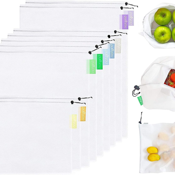 purifyou Reusable Produce Bags, Heavy Duty Double Stitched Washable Mesh Grocery Bag with Drawstring, Ideal for Farmers Market, Beach, and Refrigerator Storage, Set of 9 (XL, Large, Small)
