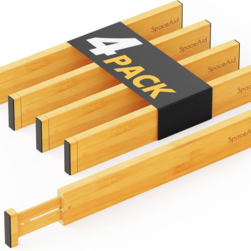 SpaceAid 4 Pack Bamboo Drawer Dividers with Labels, Kitchen Adjustable Drawer Organizers, Expandable Organization for Home Clothes Dressers (17-22 in, Natural)