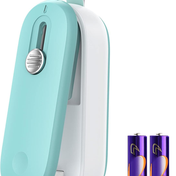 FEPPO Mini Bag Sealer, 2 in 1 Bag Sealer Heat Seal with Cutter and with Lanyard, Mini Bag Resealer Machine for Plastic Bags Snack Bags Food Storage (Batteries Included)