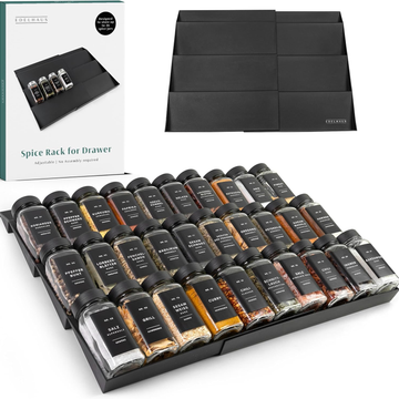 Spice Drawer Organizer - Expandable Spice Rack for Drawer, Black Seasoning Organizer for Drawer Spice Organizer, Spice Organization Seasoning rack insert for Cabinet (Jars Not Included)