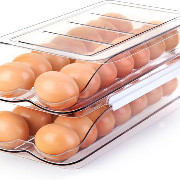 Egg Holder for Fridge, Automatic Rolling Egg Container for Refrigerator, Stackable Fridge Organizers and Storage with Lid, Clear Plastic Egg Dispenser & Tray (2 Tier)