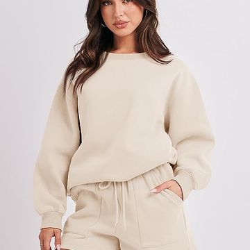 ANRABESS Women 2 Piece Outfits Sweatsuit Oversized Sweatshirt & Lounge Shorts 2023 Casual Cozy Pajamas Tacksuit Set