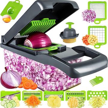 Vegetable Chopper, Pro Onion Chopper, Multifunctional 13 in 1 Food Chopper, Kitchen Vegetable Slicer Dicer Cutter,Veggie Chopper With 8 Blades,Carrot and Garlic Chopper With Container