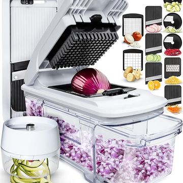 Fullstar All-in-1 Vegetable Chopper, Mandoline Slicer & Cheese Grater - Multi Blade French Fry Cutter & Veggie Dicer - Includes Bonus Handheld Spiralizer & Kitchen Gadgets (6 in 1,Black/White)