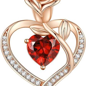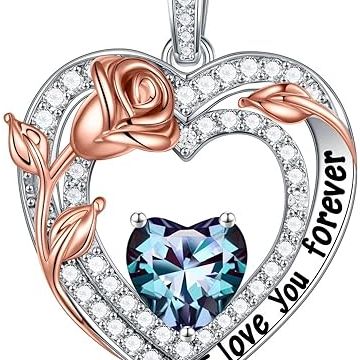 Iefil Birthstone Necklace for Women, Sterling Silver Rose Heart Birthstone Necklace Anniversary Birthday Jewelry Gifts