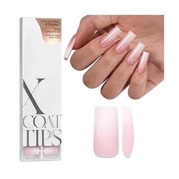 btartboxnails XCOATTIPS Ombre Nails - Square Press on Nails Long, 150Pcs Nail Tips Pink White Gradient Soft Gel False Nail Tips Soak Off Fake Nails Extensions DIY 15 Sizes