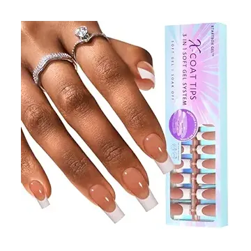 btartboxnails XCOATTIPS French Tip Nails, 300pcs Brown Long Square French Tip Gel Nails, French Tip Press on Nails for DIY Nail Art