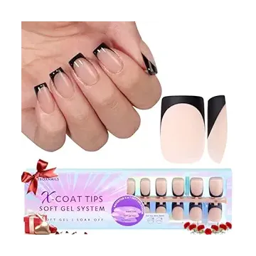 BTArtboxnails Black French Press On Nails - XCOATTIPS French Series Short Square Nails, Soft Gel Nail Tips, French Tips Press On Nails Soak Off Acrylic Fake Nails Glue On Nails Nail Extension Set