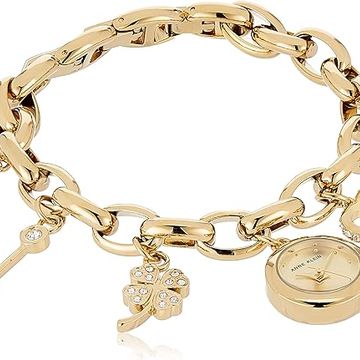 Anne Klein Women's Premium Crystal Accented Gold-Tone Charm Bracelet Watch, 10/7604CHRM