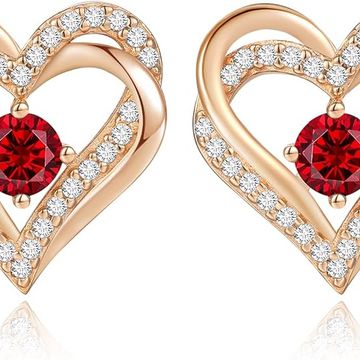 CDE Forever Love Heart Stud Earrings for Women Teen Girls, 925 Sterling Silver Birthstone Heart Stud Earrings Mother's Day Gift Anniversary