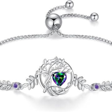 FANCIME Mother's Day Bracelet, Tree of life Birthstone Bracelet for Women Sterling Silver