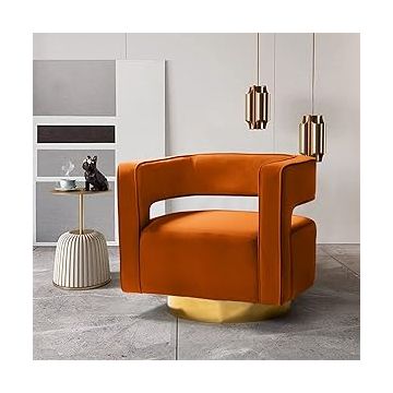 TINA'S HOME Swivel Accent Barrel Chair, Modern Velvet Armchair with 3D Curved Open Back & Swivel Gold Metal Base, Upholstered Club Chair for Living Room Bedroom