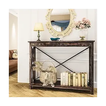 EvaStar Entryway Table, Modern Console Table with 2-Tier Storage Shelf and Metal X Support, Entry Way Sofa Table for Living Room, Hallway, Foyer, Easy Assembly, Dark Rustic