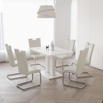 HIPIHOM Modern 59'' Kitchen Dining Table and Chairs for 6, 7 Pieces Rectangular Dining Table Set for Home, Kitchen, Living Room, Dining Room (Table+6 White Chairs)