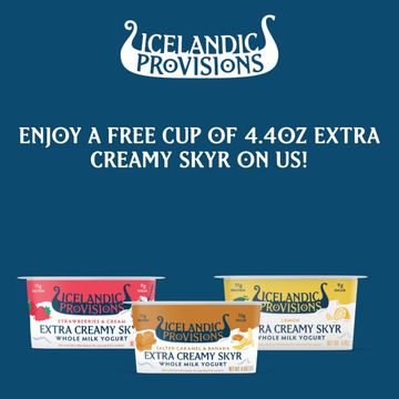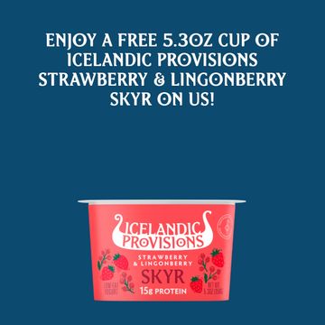 FREE 5.3oz cup of Icelandic Provisions Strawberry & Lingonberry Text +1 (681) 875-2454