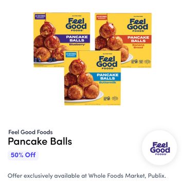 50% off Gluten Free Pancake Balls at Whole Foods pair w/social nature text +1 (719) 652-6381
