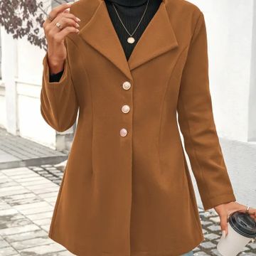 Solid Single Breasted Coat, Casual Long Sleeve Fall