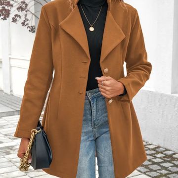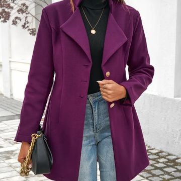 Women's Casual Polyester Blend Coat, Solid Color