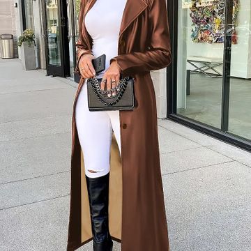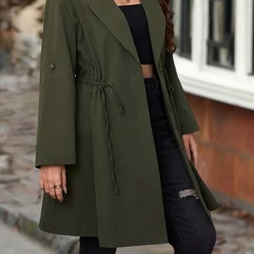 Chic Plus Size Women's Trench Coat - Casual Solid Color