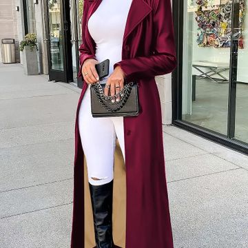 Elegant Red Double-Breasted Trench Coat for Women