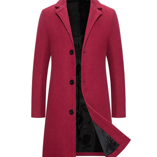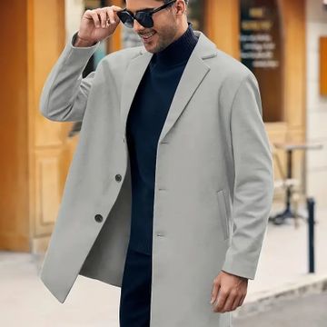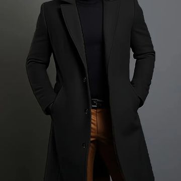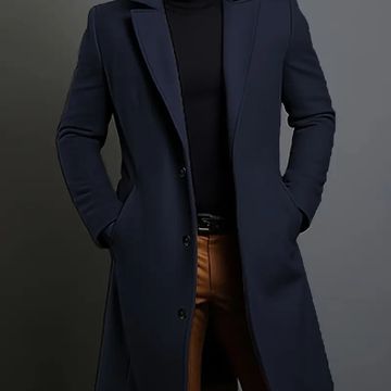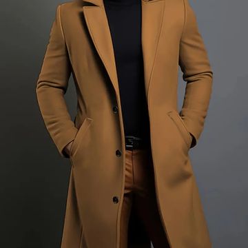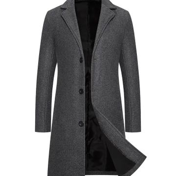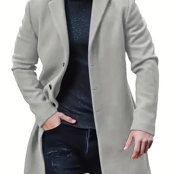Men'S Classic Solid Color Polyester Long Sleeve Coat