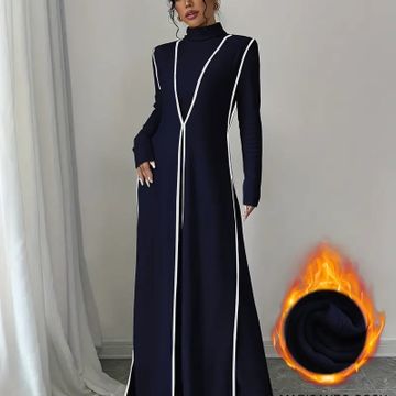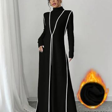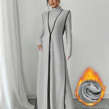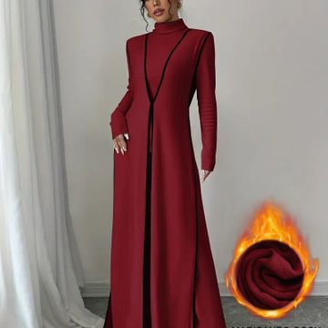 Y2K Style Ribbed Color Block Long Sleeve Peplum Dress