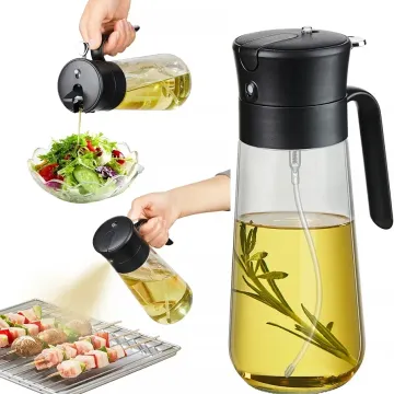 Glass Olive Oil Dispenser Bottle & Oil Sprayer Bottle 2 In 1 for Kitchen Cooking, Auto Flip Cap