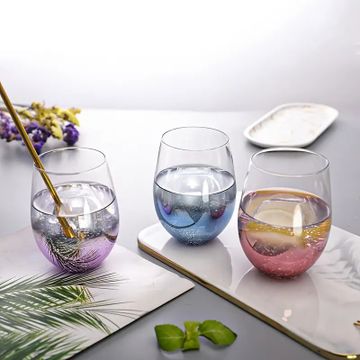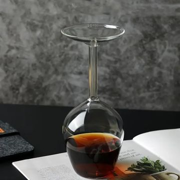 Hand Blown Glass Wine Glasses, 400ML Upside Down Stem Design