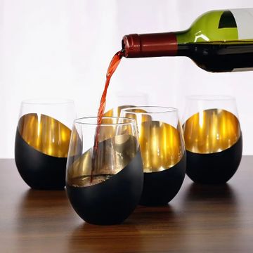 Highball Glasses Golden Black Rose Golden 2pcs-1set